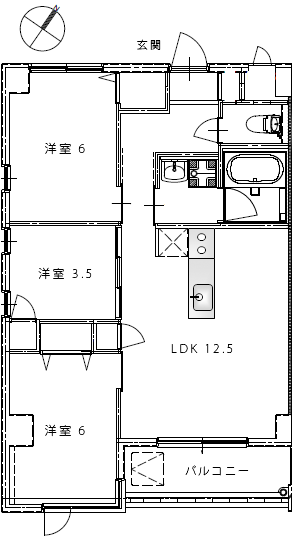 3LDK 洋室 6帖 × 2室 洋室 3.5帖 × 1室 LDK 12.5帖 バス・トイレ別